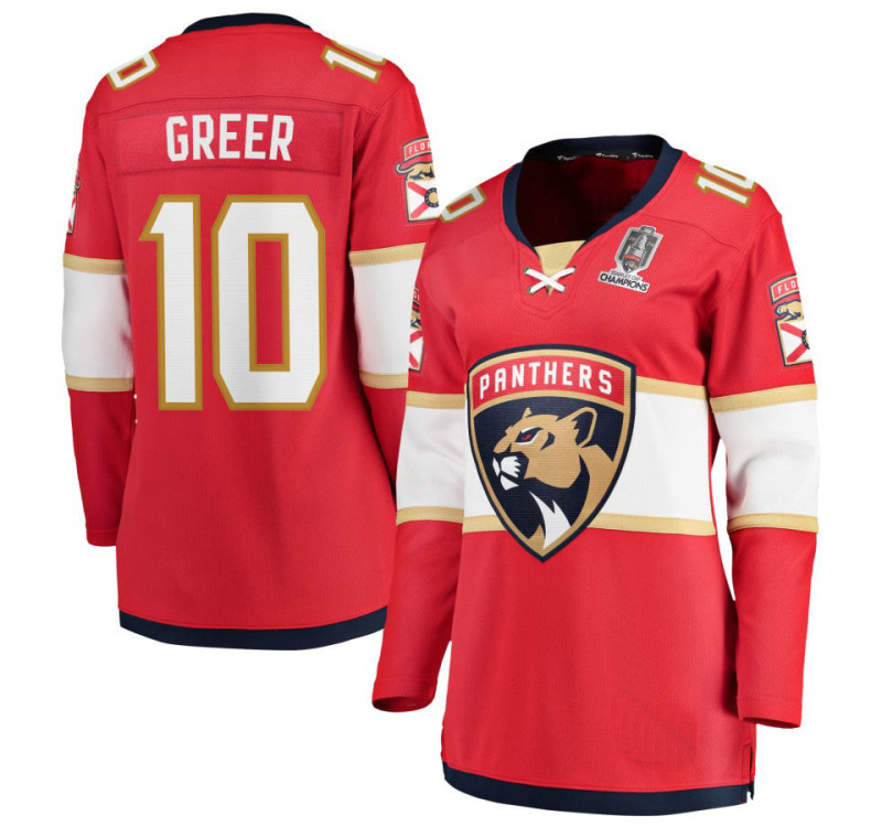 - Panthers #10 A.J. Greer Women's Home 2024 Stanley Cup Champions Breakaway Red Jersey