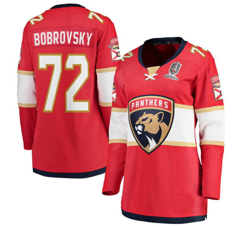 - Panthers #72 Sergei Bobrovsky Women's Home 2024 Stanley Cup Champions Breakaway Red Jersey