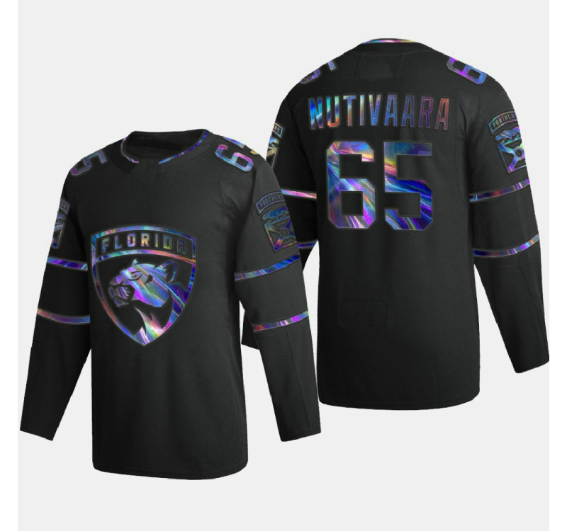 Men's Florida Panthers Markus Nutivaara #65 Iridescent Holographic Authentic Black Jersey