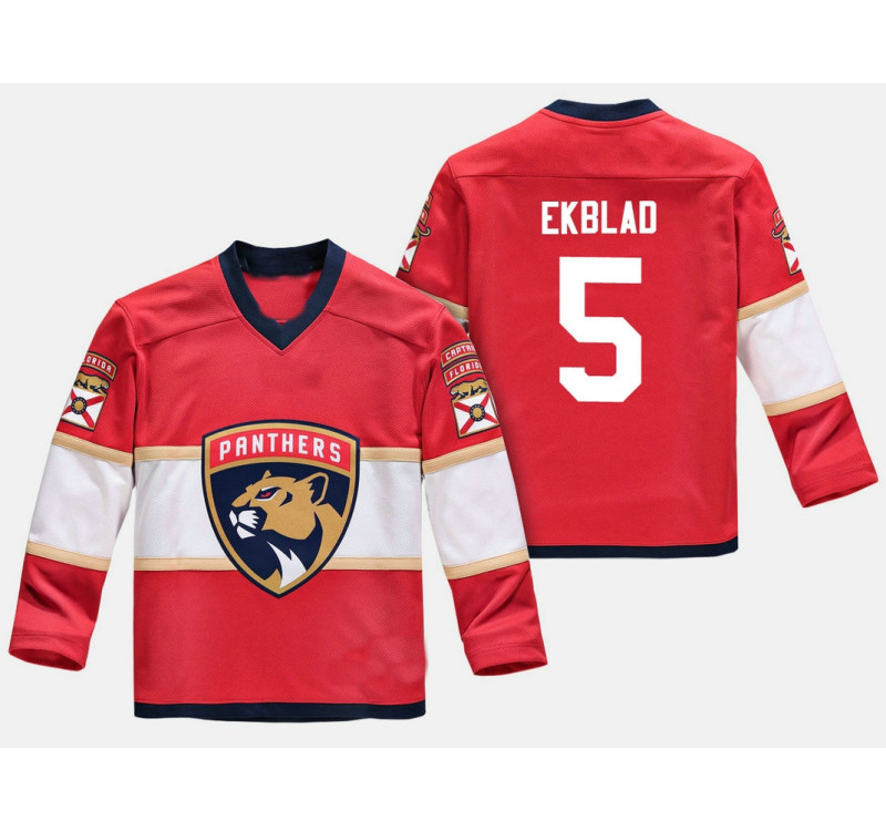- Youth Panthers Aaron Ekblad #5 Replica Player Home Red Jersey